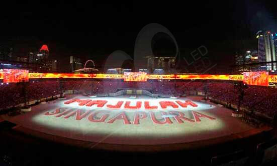 此前,该系列的户外屏F10也曾被应用在新加坡独立50周年的庆典上,舞台搭建面积达2700㎡,屏体环绕整个广场,场面盛大,气势恢宏。